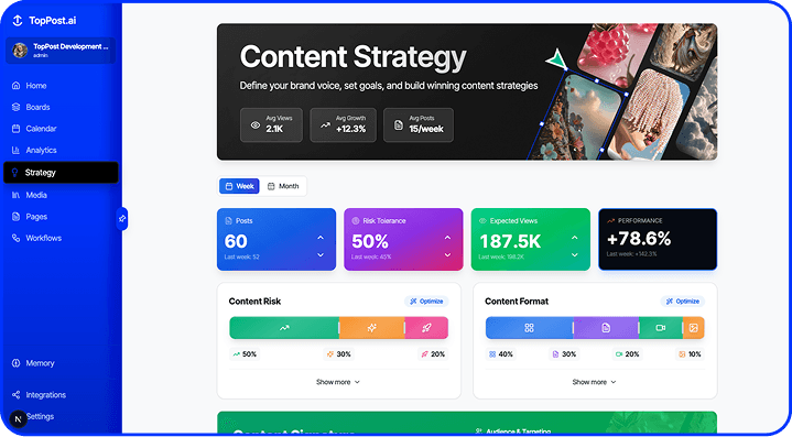 Consolidate your stack. Native Social Scheduling, Content Gen, CMS, Analytics, and Strategy—unified.